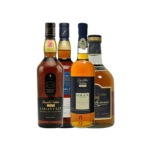This Distiller’s Editions Single Malt Scotch Whisky Set includes one bottle of Lagavulin Distiller’s Edition Single Malt Scotch Whisky, Oban Distiller’s Edition Single Malt Scotch Whisky, Talisker Distiller’s Edition Single Malt Scotch Whisky and Dalwhinnie Distiller’s Edition Single Malt Scotch Whisky.